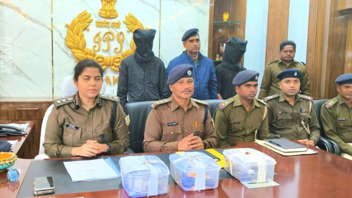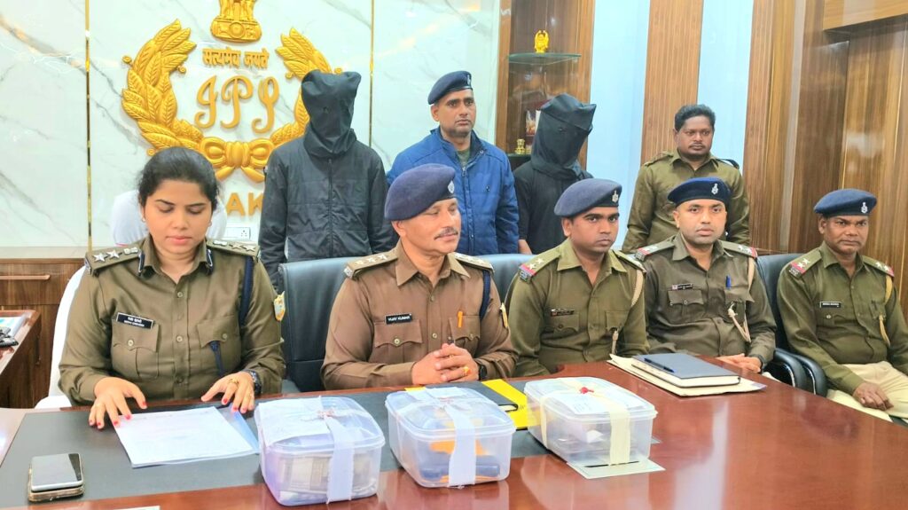 पाकुड़ अपडेट : जिले के महेशपुर थाना अंतर्गत बीते 16 तारीख को रात्रि करीब आठ बजे महेशपुर सिनेमा हॉल के सामने गली में पिस्टल से सिर पर वार कर वादी अनूप कुमार भगत से तकरीबन तीन लाख चालीस हजार रुपये की लूटपाट का पाकुड़ पुलिस ने खुलासा किया। मामले पर पुलिस अधीक्षक निधि द्विवेदी ने प्रेस वार्ता कर बताया कि घटना के बाद महेशपुर एसडीपीओ के नेतृत्व में विशेष टीम का गठन किया गया था जिसमें मुख्य आरोपी देवघर का रहने वाला मनोरंजन कुमार, पिता दिगम्बर राउत, उम्र 20 वर्ष एवं गिरिडीह जिले का लालू यादव, पिता कीर्तन यादव, उम्र 19 वर्ष को पिस्टल, नगद राशि 268480 रुपये, कांड में इस्तेमाल बाइक, दो मोबाइल एवं एक सफेद गमछा जिसमें खून लगा हुआ था जब्त किया गया।