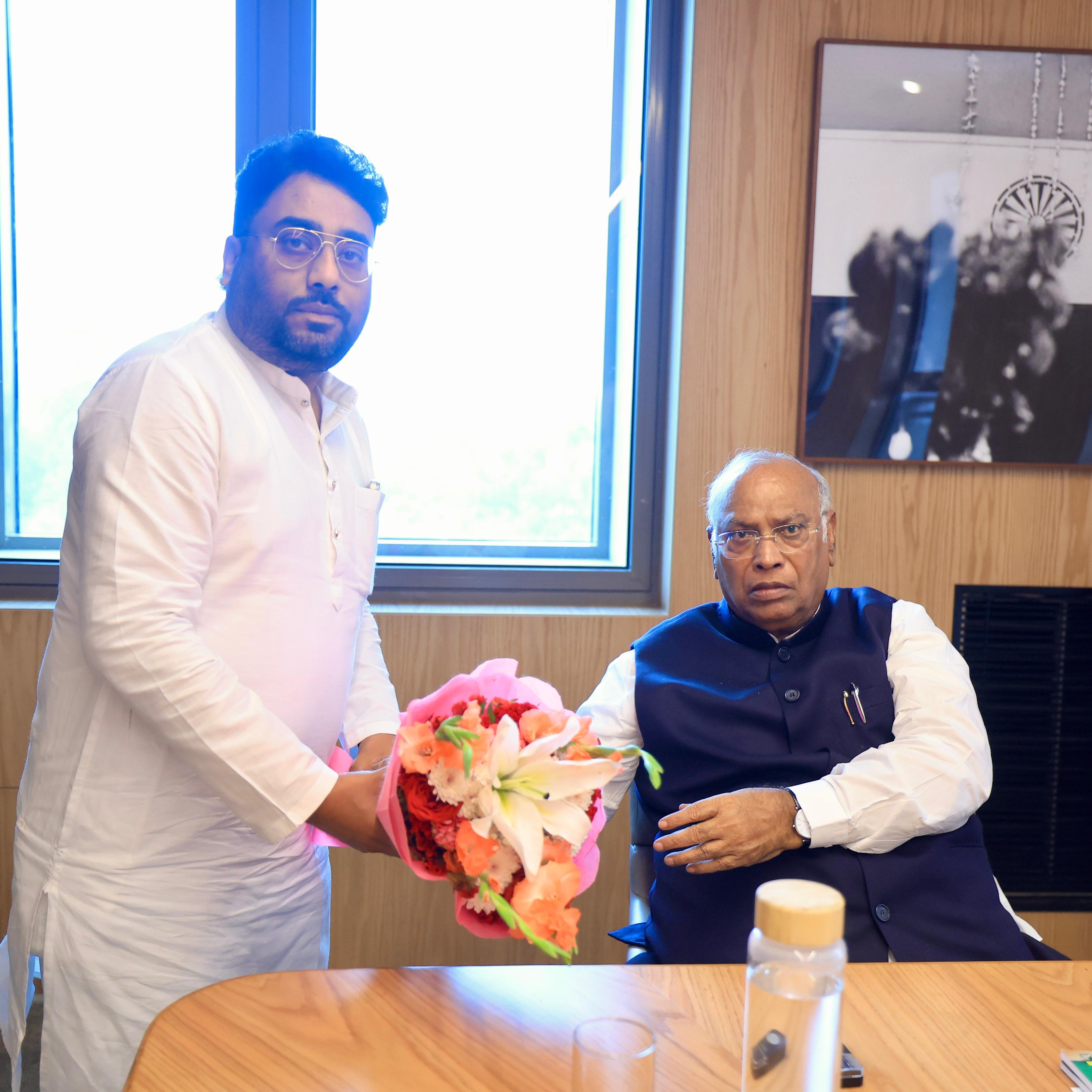 पाकुड़ संवाददाता: दिल्ली स्थित कांग्रेस मुख्यालय में झारखंड प्रदेश कांग्रेस के महासचिव तनवीर आलम ने कांग्रेस राष्ट्रीय अध्यक्ष मल्लिकार्जुन खड़गे से औपचारिक भेंट की। इस महत्वपूर्ण मुलाकात में झारखंड में संगठन की वर्तमान स्थिति, युवाओं की भागीदारी, आगामी चुनावी रणनीति और जनहित से जुड़े कई अहम मुद्दों पर विस्तार से चर्चा हुई। श्री खड़गे ने तनवीर आलम की संगठनात्मक सक्रियता एवं प्रतिबद्धता की प्रशंसा की तथा उन्हें पार्टी को जमीनी स्तर पर और मजबूत करने हेतु आवश्यक मार्गदर्शन भी दिया। यह संवाद झारखंड में कांग्रेस की राजनीतिक धार को और तेज़ करने की दिशा में एक सशक्त कदम है, जो आने वाले समय में संगठन को और गति देगा।