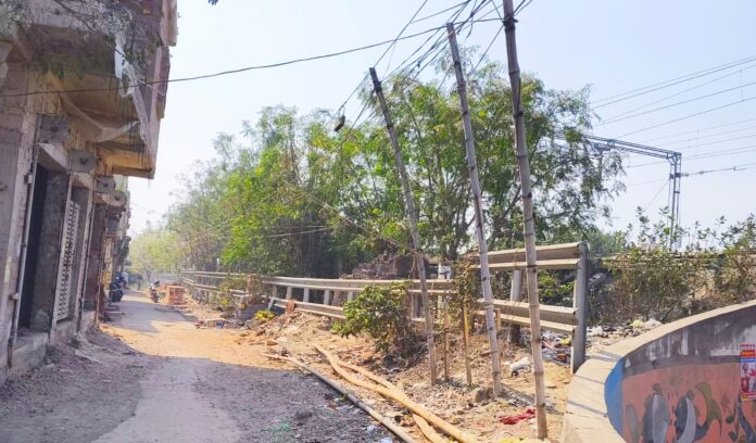 पाकुड़ अपडेट : एक और नगर निकाय का चुनाव नजदीक होते जा रहा है वही चुनाव में खड़े अध्यक्ष एवं वार्ड पार्षदों के उम्मीदवारों के द्वारा चीख चीख कर विकास की वादा किया जा रहा है वही इस प्रगतिशील पाकुड़ में आज भी नगर क्षेत्र में बांस के सहारे बिजली पहुंचाया जा रहा है। मामला रेल फाटक के उस पार चमरा गोदाम मोहल्ले की है जहाँ घनी आबादी होने के बावजूद बांस के सहारे घरों तक बिजली पहुंच रही है जो कभी भी एक बड़ी हादसे को आमंत्रित कर रही है। स्थानीय लोगों ने बताया कि पोल की मांग की गई थी लेकिन आज तक नहीं मिला, सड़क किनारे बच्चे खेलते है, सारा दिन काफी तादाद में राहगीरों का आना जाना रहता है ऐसे में बांस के खंभे में बिजली का तार जाना चिंतनीय है। वही मामले पर बिजली विभाग के कनीय अभियंता आशीष पटेल से दूरभाष पर पूछा गया तो उन्होंने कहा कि इस पर जांच करते हुए बांस के खंभे को हटाया जायेगा, इस बार का स्लॉट में अगर पोल उस जगह के लिए आया होगा तो इसी बार लग जायेगा नहीं तो अगले बार कर दिया जायेगा।