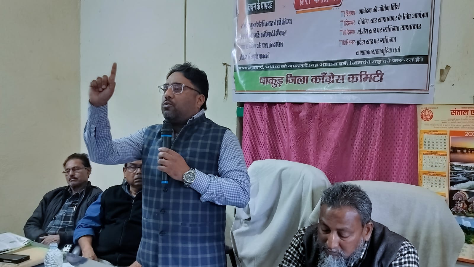 पाकुड़ अपडेट : शुक्रवार को पाकुड़ जिला कांग्रेस कार्यालय में जिला अध्यक्ष श्री कुमार सरकार की अध्यक्षता में झारखंड प्रदेश कांग्रेस कमिटी के महासचिव डॉ. तनवीर आलम की उपस्थिति में एक महत्वपूर्ण बैठक का आयोजन किया गया। बैठक के दौरान तनवीर आलम ने SIR (स्पेशल इंटेंसिव रिवीजन) को लेकर कांग्रेस कार्यकर्ताओं को विस्तृत रूप से जानकारी दी।