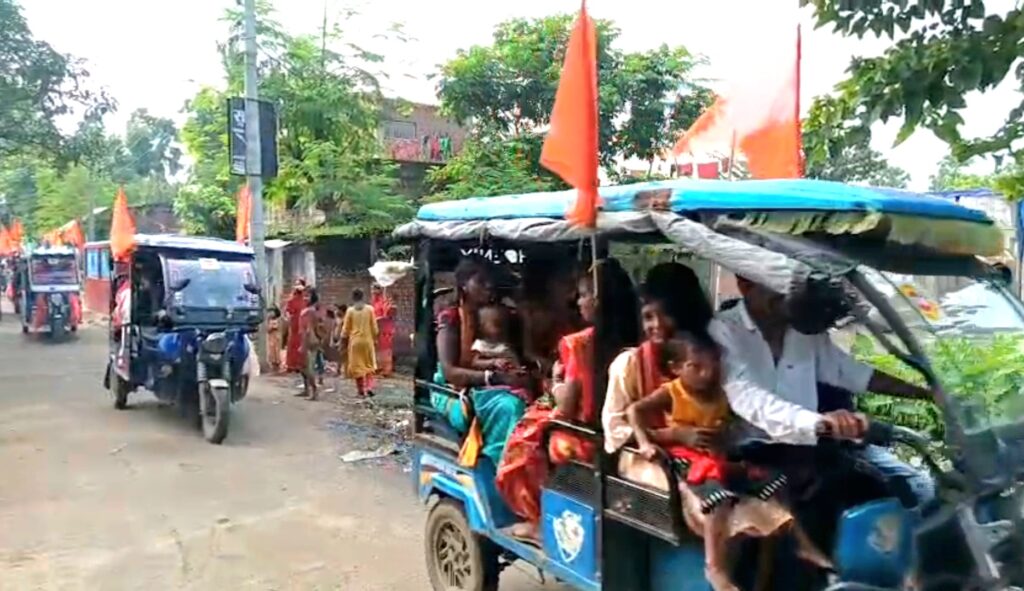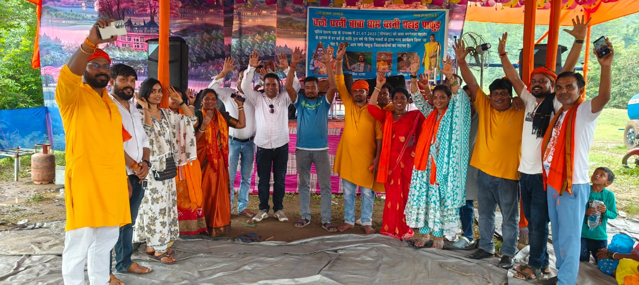 पाकुड़ संवाददाता : श्रावण मास के दूसरे सोमवार को जिला परिषद पाकुड़ 09 सदस्य सह रामभक्त सेवा दल की प्रदेश अध्यक्षा सनातनी पिंकी मंडल के नेतृत्व में हजारों ग्रामीणों के सहयोग से हर वर्ष की भांति इस वर्ष भी “चलो धरनी बाबा धाम” के भव्य आयोजन को सफलतापूर्वक संपन्न किया गया। महादेव के पावन धाम पाकुड़ जिले के धरनी पहाड़ जहां महादेव हजारों फीट ऊंचे पहाड़ी के ऊपर हरे भरे हरियालियों के बीच प्रकृति के गोद में विराजमान है में शिव भक्तों का जन सैलाब इस प्रकार उमड़ा जैसे सनातन धर्म संस्कृति के प्रति आस्था का संकल्पित भाव भगवामय के साथ संदेश दे रहा हो।