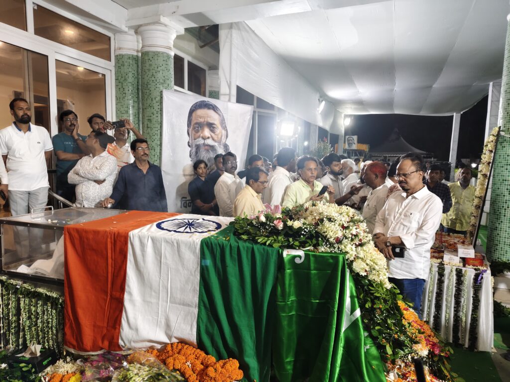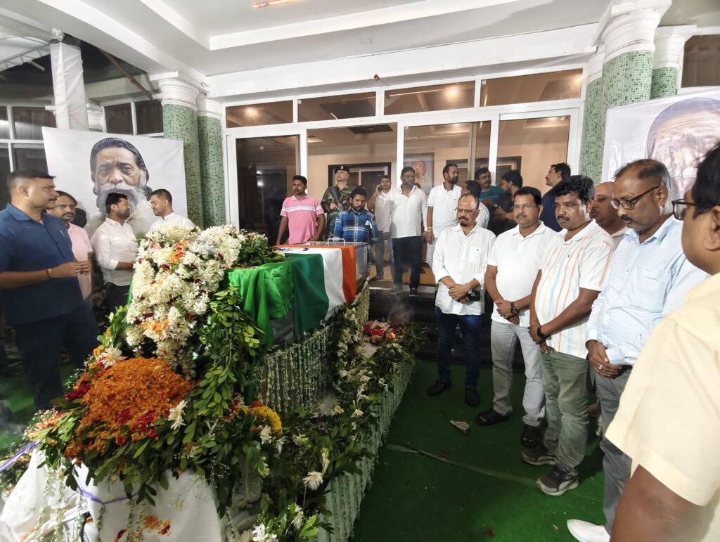 रांची संवाददाता: राँची के मोरहाबादी स्थित गुरुजी आवास पहुँचकर राज्य के निर्माता, पुर्व मुख्यमंत्री, झामुमो के संस्थापक संरक्षक, सबके अभिभावक परम आदरणीय दिशोम गुरु श्री शिबू सोरेन के पार्थिव शरीर पर पुष्प अर्पित कर श्रद्धांजलि देते पाकुड़ जिला के झामुमो जिलाध्यक्ष एजाजुल ईस्लाम, जिला उपाध्यक्ष हाजी समद अली, जिला उपाध्यक्ष पीटर मरांडी, जिला संयुक्त सचिव तरुण मंडल, युवा मोर्चा जिलाध्यक्ष