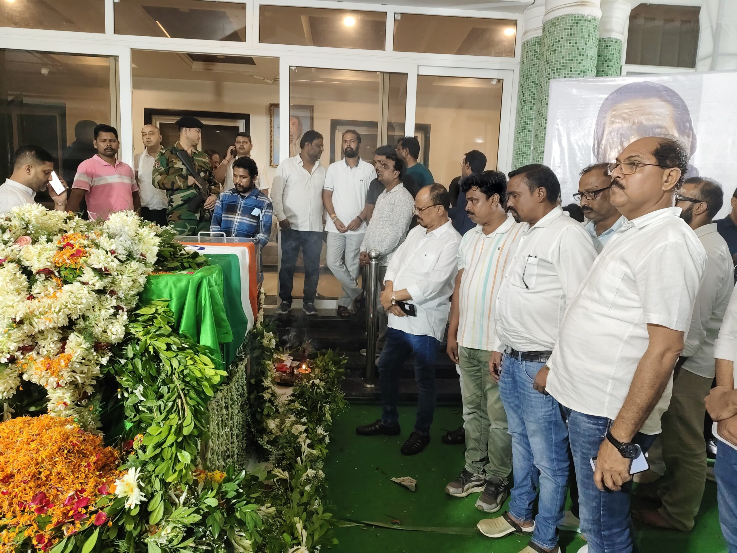 रांची संवाददाता: राँची के मोरहाबादी स्थित गुरुजी आवास पहुँचकर राज्य के निर्माता, पुर्व मुख्यमंत्री, झामुमो के संस्थापक संरक्षक, सबके अभिभावक परम आदरणीय दिशोम गुरु श्री शिबू सोरेन के पार्थिव शरीर पर पुष्प अर्पित कर श्रद्धांजलि देते पाकुड़ जिला के झामुमो जिलाध्यक्ष एजाजुल ईस्लाम, जिला उपाध्यक्ष हाजी समद अली, जिला उपाध्यक्ष पीटर मरांडी, जिला संयुक्त सचिव तरुण मंडल, युवा मोर्चा जिलाध्यक्ष