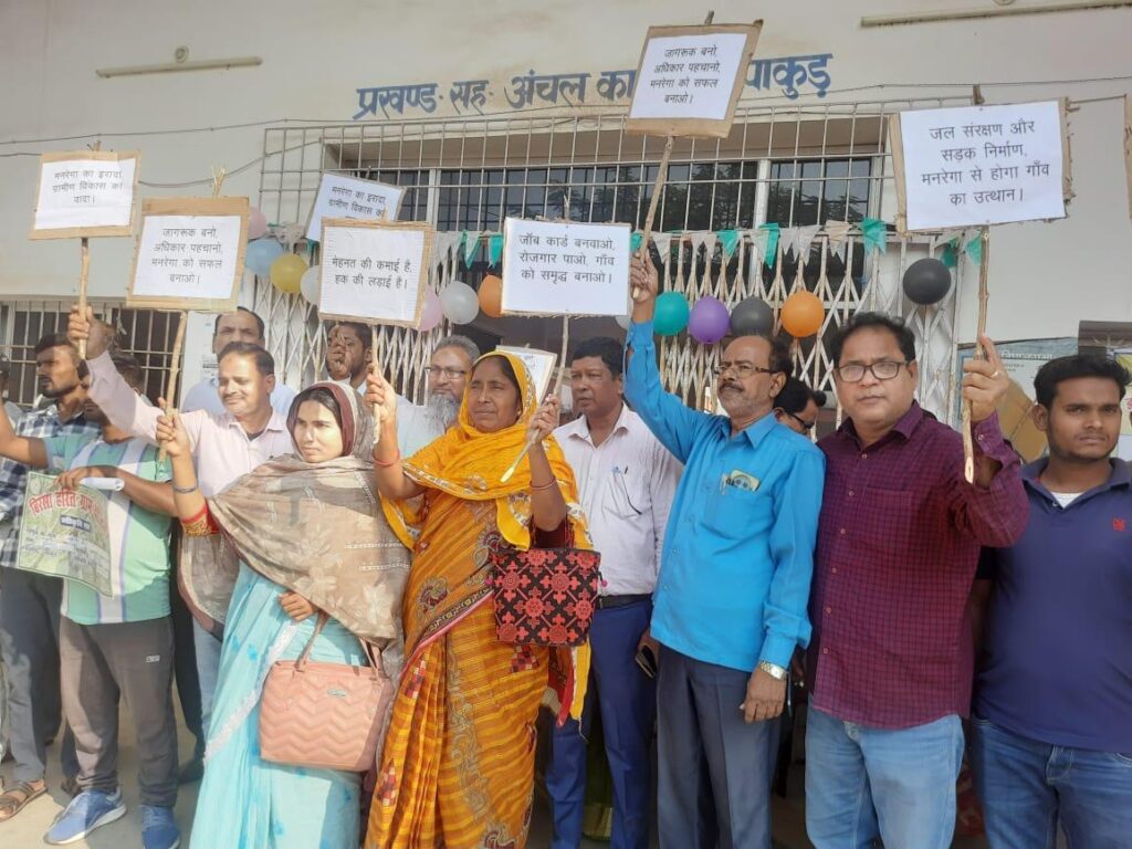पाकुड़ अपडेट: 25 वां झारखण्ड स्थापना दिवस पर प्रखंड पाकुड़ में और सभी 36 पंचायत में मनरेगा के तहत विभिन कार्यक्रम का आयोजन किया गया! जिसमे उत्कृष्ट कार्य करने वाले महिला मेट, मजदूर और बागवानी सखी को सम्मानित किया गया!