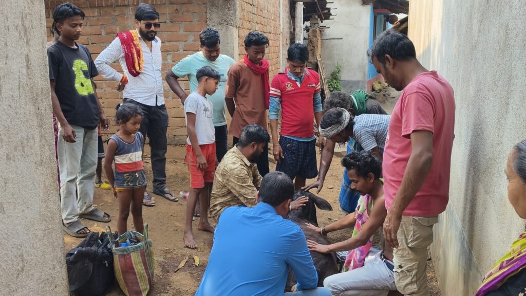पाकुड़ अपडेट : बुधवार को किताझोर में एक गौ माता अचानक से बीमार हो गई और जमीन पर गिर कर बेहोश हो गई, इस बात की सूचना मिलते ही राष्ट्रीय संगठन रामभक्त सेवा दल के जिला टीम मौके पर पहुंचकर बीमार गौ माता के इलाज में जुट गये। संगठन के जिला अध्यक्ष सनातनी रतन भगत तुरंत पशु चिकित्सक को बुलाकर बीमार गौ माता का इलाज करवाया एवं आसपास के लोगों के सहयोग से माता का सेवा भी किया। मामले पर जिला अध्यक्ष ने बताया कि संगठन हमेशा से गौ माताओं की रक्षा एवं सेवा में अपना योगदान देते आ रही है,